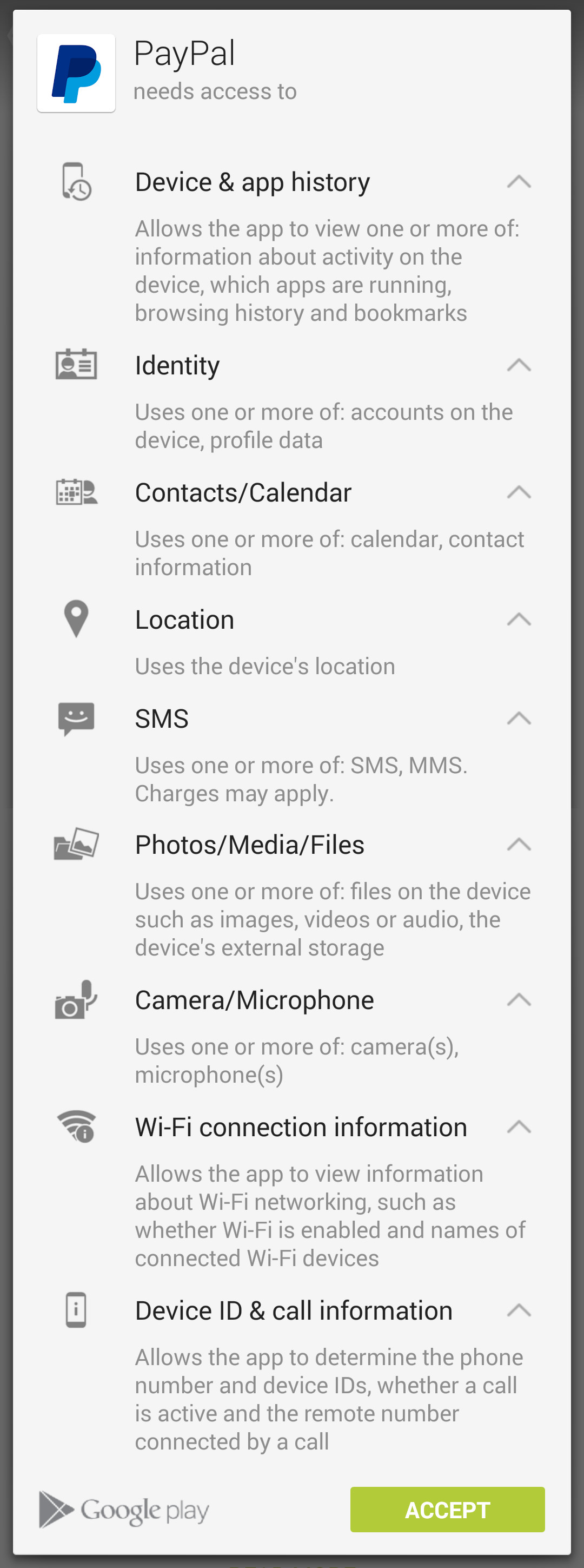 Hey Paypal, why do you need access to my microphone, camera and photos?
