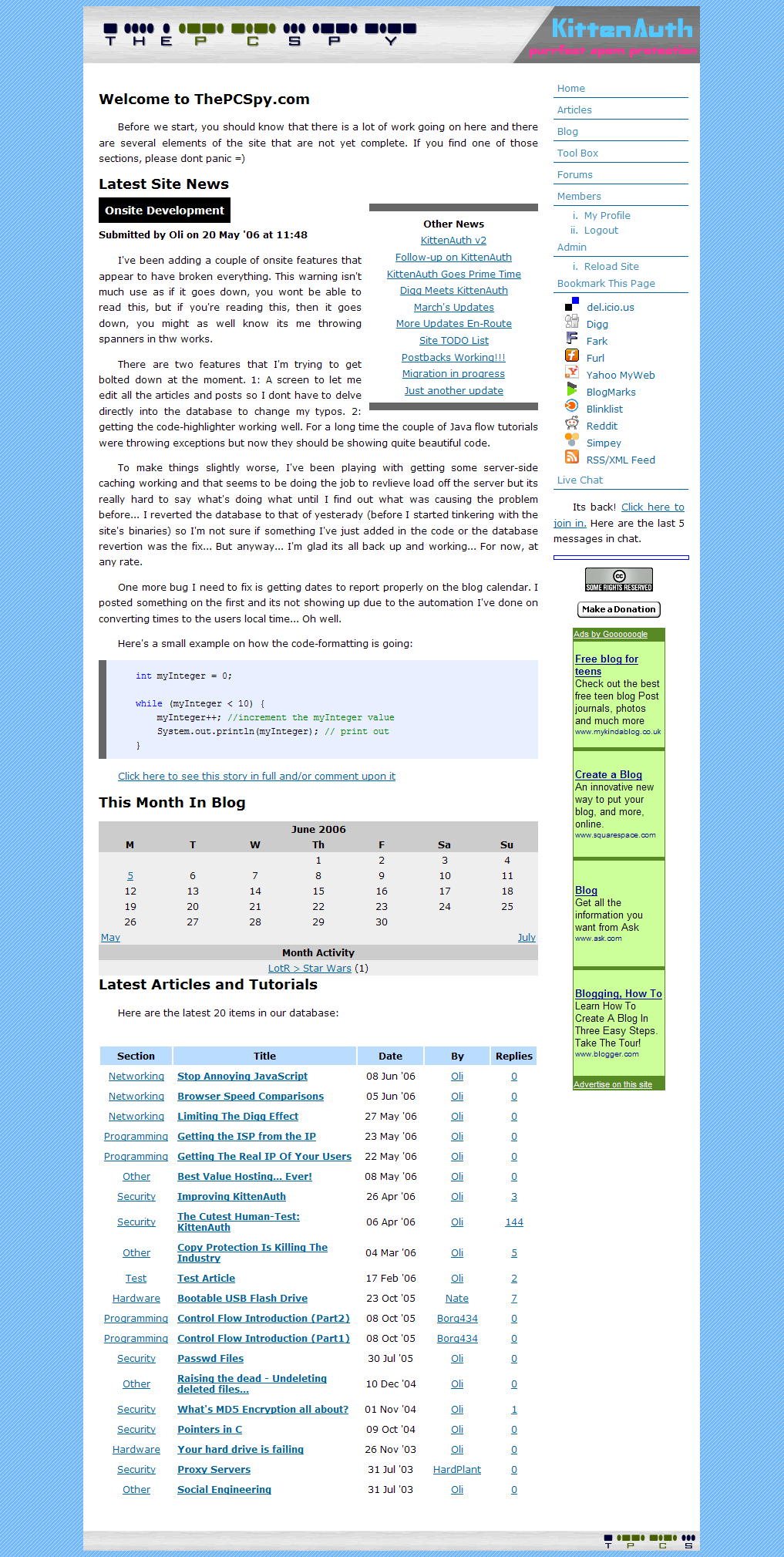 I’ve expanded the design a lot and that 1% of people using 800*600 are going to have to get friendly with the scroll bars if they want to navigate. It’s not something I wanted to do, but the old width (although that was too wide for you too) was still too constrictive. You may have noticed that there are a couple more adverts on the site. This is just to raise funds to make sure the bills can be paid. There is also a new search feature (thank’s google).